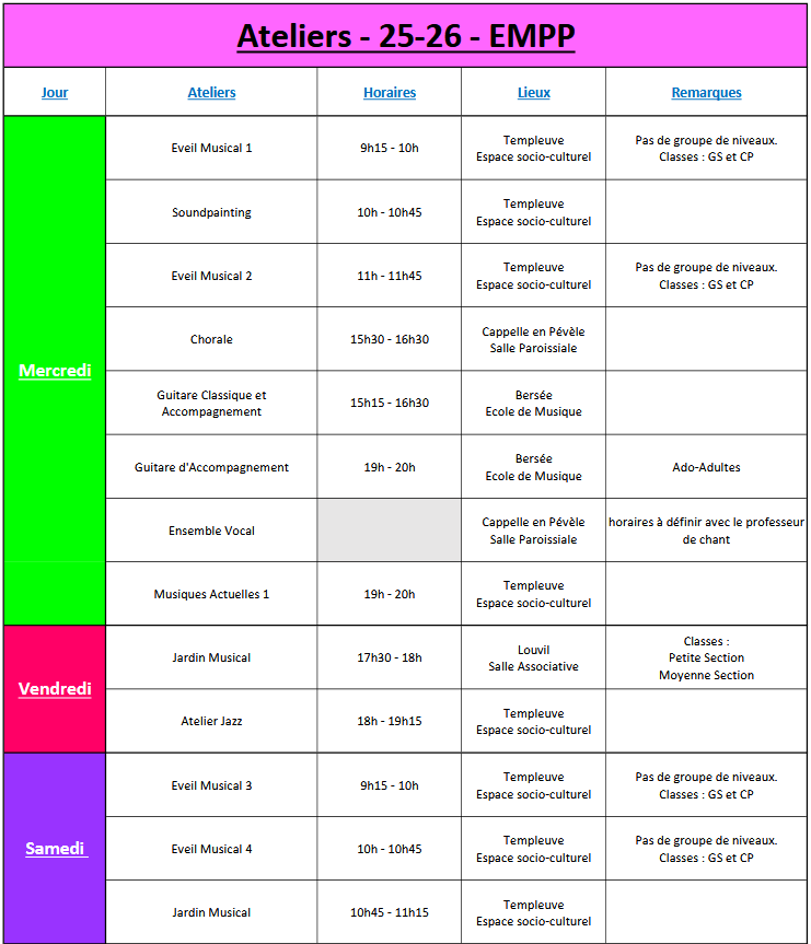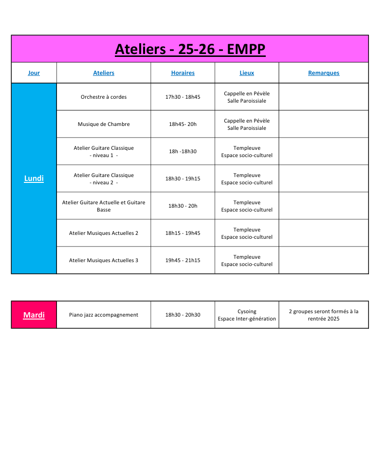 Ateliers 2025-26