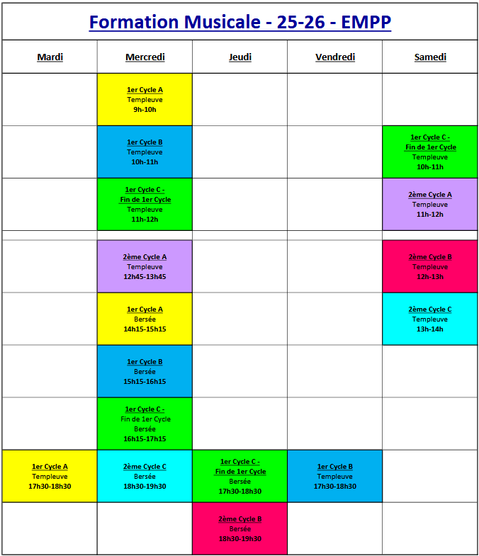Calendrier prévisionnel FM 2025-2026