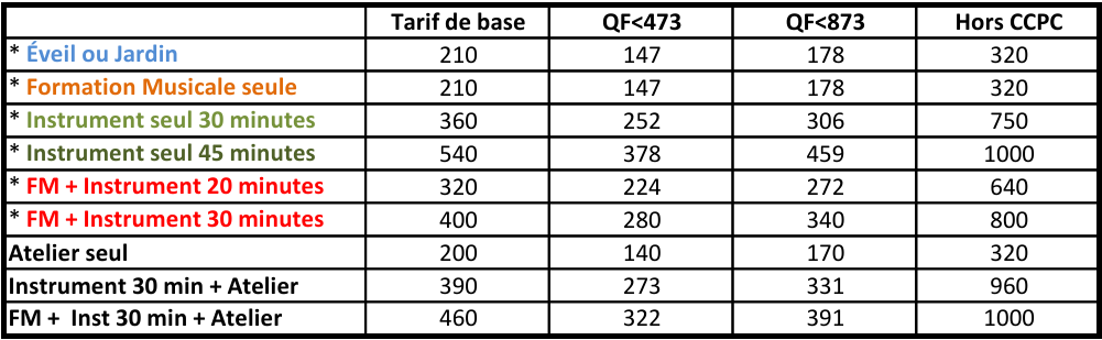 Nous vous remercions de votre confiance et de votre fidélité à l’École de Musique et souhaitons vous apporter des informations sur la grille tarifaire qui s’appliquera pour la prochaine saison 2024-2025.